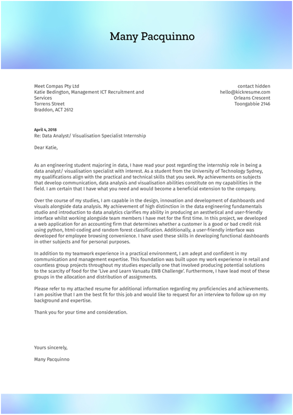 COVER LETTER